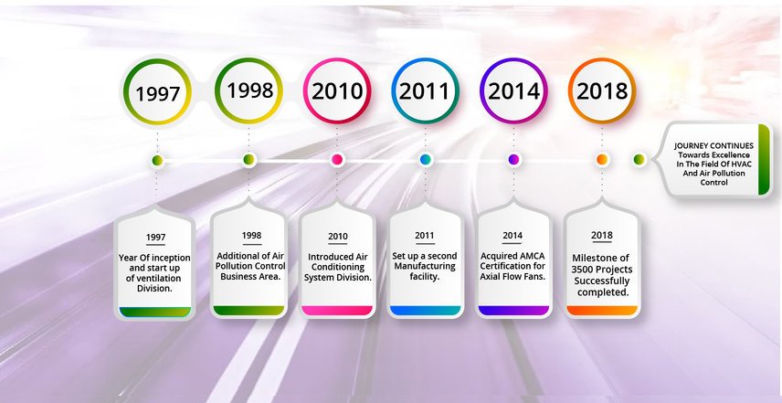 VENTECH SYSTEMS PVT. LTD., a pioneer in Air Engineering Systems namely : Ventilation, Air Conditioning & Air Pollution Control Systems is an ISO 9001 : 2015 certified company started in 1997 with a sole purpose to cater to the precise needs of a wide array of Industrial Situations.
